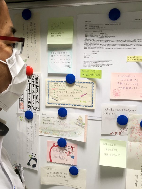 その申請書に同封する形で「大変な状況の中、本当にありがとうございます。お体をお大事に」、「行政は何かと批判を受けて大変でしょうが、頑張って下さい」、「コロナで大変な中、感謝、感謝です」、「早期の給付は市役所の努力。宇治市に住んで良かった」、「迅速な対応に感謝。巣ごもり生活からの気分転換に有効活用させてもらう」など励ましや激励の言葉を添えるケースが増加。付箋であったり、一筆箋にしたためられ、既に70~80件を確認しているといい、ハガキでも届いた。