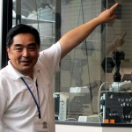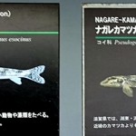 今回、突然のアポなし訪問にも快く対応頂き、厳重に保管されているナガレカマツカの標本を特別に見せていただきました。正直なところ、カマツカとの区別も自信はありませんでしたが、いくつかの識別ポイントを確認することができて大変参考になりました。もちろん門外不出の貴重な標本で、データと共に写真記録も叶いませんが、展示されたばかりのナガレカマツカの生体を中井克樹先生にご案内いただきました。(写真④⑤)