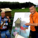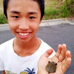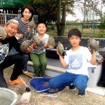 対して爬虫類では、10月1日に今年生まれのイシガメの仔亀が福井惇一君(写真④)から届けられ、来年度からのニホンイシガメ復活プロジェクトを前に早くも繁殖池で産まれたものと共に放流のその日まで松井優樹君が大事に室内飼育です。一方の増殖用の親亀たちは、甲羅に個体番号の標識を刻印してお父さんとお爺ちゃんの協力で完成した立派な亀池に放して冬眠の準備に入りました。(写真⑤) 小学校3年生で日本爬虫両棲類学会大会での研究発表に名を連ねた優樹君、来年度の学会発表に視界良好です。