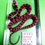 果たして、城陽市のお宝生物として生き物ハンドブックの表紙を飾る珍蛇・シロマダラで、ホルマリンなどの液浸標本に替わる教材資料が求められていたときだけに、新鮮な屍は大変役に立ちました。かくして、中学生にして職人技を習得している福井惇一君に託して、城陽産基標本となるシロマダラの立派な作品が完成しました。(写真⑧) 本来は夜行性で個体数も極少なく、野外での観察記録もなかった幻の蛇・シロマダラの生息を信じ、実証に至った経緯はナチュラリストの胸を張れる成果のひとつです。