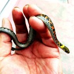 ヘビの記録写真では、ハンドリングと呼ばれる大きさや特徴が分かる撮影がいいのですが、毒蛇のヤマカガシ(写真⑩)は個体差が大きく、皮膚からも毒液を出すので扱いには注意が必要です。そもそも、マムシと共に危険生物として飼育や移動も禁じられていて、一般の人たちが対処できるものではありません。本来は行政や警察へ持ち込むべき迷惑な生き物や傷病鳥獣の問題も、ナチュラリストが果たすべく使命と「緊急避難的処置」としてお手伝いをしています。
