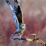 これら富士鷹なすびさんのイラストと共に、城陽環境PS会議に約400種類もの野鳥写真を寄贈いただいた山中十郎さんの作品が今年も紙面を飾ります。現在、主要調査地としている巨椋池干拓田に隣接する宇治川河川敷の源内では、今や絶滅危惧種として見ることができなくなったコミミズク(写真③)の生息が確認され、同じく絶滅危惧種の希少猛禽類のチュウヒ(写真④)の出現を心待ちにしています。こうした調査報告に添えるお二人の写真とイラストが、見た目にも華やかで資料価値を高めてくれるものと感謝しています。