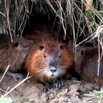 そして今年の「野鳥初詣」は、昨年NHKの「さわやか自然百景」の取材が中止となったケリ(写真⑥)を初見鳥に、無事放映に至るように願掛けをしています。ケリの研究で学位をとった脇坂英弥君の元に、京大と岐阜大学の学生から調査・研究に不可欠な捕獲技術等の指導要請があり、筆者考案の匠の技の伝授で若き研究者の期待に応えます。鳥類標識調査員から初の狩猟者・ハンターになったナチュラリスト、本来の目的である外来生物駆除で貢献の年にしたいと考えています。ヌートリア(写真⑦)用には、カメ罠を改良して捕獲を行いますが、本来、何の罪もなくむしろ被害者たる彼らへの対処には心が痛みます。