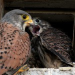 そうした一助になるフィールド調査の成果を公表できることを願って、来年こそ思い残すことのない活動で朗報をお届けしたいものです。野鳥調査は頼もしき鳥類学者の脇坂英弥君(写真⑦右)を中心に、「城陽生き物ハンドブック2010」において京都府2例目となる繁殖記録を公表したハヤブサの仲間の猛禽類・チョウゲンボウ(写真⑧)の繁殖定着を願ってのプロジェクトも始動しました。同じく城陽市のお宝生物・フクロウとアオバズクの巣箱の設置も始め、鳥類研究の最前線・鳥類標識調査の実施と関係者への公開も行っています。