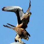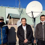 この日は、1月8日に福祉施設・ひだまり久世の屋上に設置したチョウゲンボウの人工巣箱の様子見で、鳥と人に配慮してこれだけ遠くから観察しています。昨年、田中さんによってチョウゲンボウの交尾シーンが撮影され、今後の繁殖生態に添える貴重な記録写真が得られました。(写真③) 石田実理事長(写真④中)と施設長の理解と協力に感謝し、全国初の取り組みが陽の目をみることを願っています。犬小屋を利用したチョウゲンボウの人工巣箱プロジェクトは、当洛タイ新報「里山通信20」で脇坂英弥君(同左)が詳細報告していますのでそちらをご覧下さい。