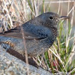 福井君の指摘通り、イソヒヨドリよりひと回り小さく、尾も短く若鳥やメスとは明らかに異なる羽色より、南方系の亜種・アオハライソヒヨドリの可能性があると思われますが、