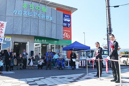 この日、午前10時から行われた開会セレモニーでは、信貴康孝町長が「スタートアップを契機に府内各地の魅力ある商品をラインナップし、拡充していきたい。ご利用を」と挨拶し、府内各地域が発展していくことを祈念した。またクロスピアが所在する森南大内地区には2025(令和7)年春にホテルが開業することにも触れ、「このエリア全体が南山城地域の北の玄関口・ゲートウェイとしての役割を果たしていくことを期待している」と、さらなるにぎわいの創出に期待を込めた。