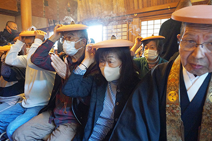 宇治田原町奥山田の高野山真言宗「遍照院」で7日、ぼけ封じと健康祈願の焙烙(ほうろく)灸祈祷が営まれ、檀家ら約70人の熱気にあふれた。