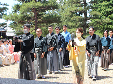 午前9時から境内各所で茶席が開かれ、法堂や松隠堂、東方丈、西方丈などの建物の中で参拝者が風流な煎茶を味わった。午前11時からは本堂前で小笠原流の家元による献茶式が厳かに行われ、参席した社中らが静かに手を合わせた。