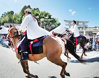 そして迎えた還幸祭。京都府の無形文化財に指定されている神事「せいのう舞」「王の舞」「獅子舞」「田楽」が奉納され、午前11時すぎから駆け馬。郷之口の御旅所前沿道で大勢の人々が熱視線を注ぐ中、2頭の神馬が颯爽と風を切った。