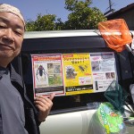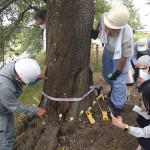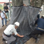 こうして京都府で開催されたクビアカツヤカミキリの講習会に参加し、被害著しい高槻市への視察も経て、ナチュラリスト仲間と共に地元において最前線での調査で「確認できず」の成果の無い記録にも自身で納得のいくものでした。(写真①②) そして新たに京都市と向日市、福知山市でも確認され、再び開催された講習会で侵入発見後の防護法の実習を学びましたが、薬剤投与(写真③)や防護ネット張り(写真④)は労力と共に経費もかさむ大変な作業で、来期に向けて先行き不安な想いのクビアカツヤカミキリのシーズン終了でした。