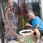タイリクバラタナゴ(写真⑤)の侵入経路は、1942年に中国から食用に輸入されたハクレンの種苗に混入したとされ、観賞魚として全国に拡がりました。城陽市では昔からキンタと呼ばれる体が扁平できれいな魚がいました。それがニッポンバラタナゴ(写真⑥)で、タイリクバラタナゴとは見分けがつかないほどの近縁種です。昭和30年代後半にはタイリクバラタナゴが定着し、ニッポンバラタナゴが見られなくなったとする根拠には、筆者の幼少期からの原体験に、「木津川最後の川漁師逝く」と報じられた父・中川朝清(写真⑦左)から聞いた貴重な数々の記録によるものです。