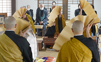宇治田原町にある曹洞宗の古刹…禅定寺で18日に開山忌法要が営まれ、中興の祖とされる月舟宗胡(げっしゅうそうこ)禅師の遺徳を顕彰。参拝者が静かに手を合わせた。