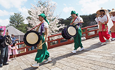 2日目の6日には、喜撰橋を渡り塔の島、橘島と太鼓や笛の音色を奏でアピールした宇治田楽まつりのパフォーマンスに注目が寄せられた。