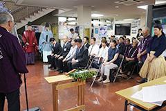 鵜飼スタートに先立ち、宇治市観光協会(中村藤吉会長)は、宇治塔川にある観光センター1階で川開きの安全祈願祭を開いた。同協会や㈲宇治川観光通船の関係者ら30人が参加し、安全無事な開催を祈願した。