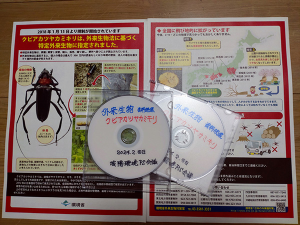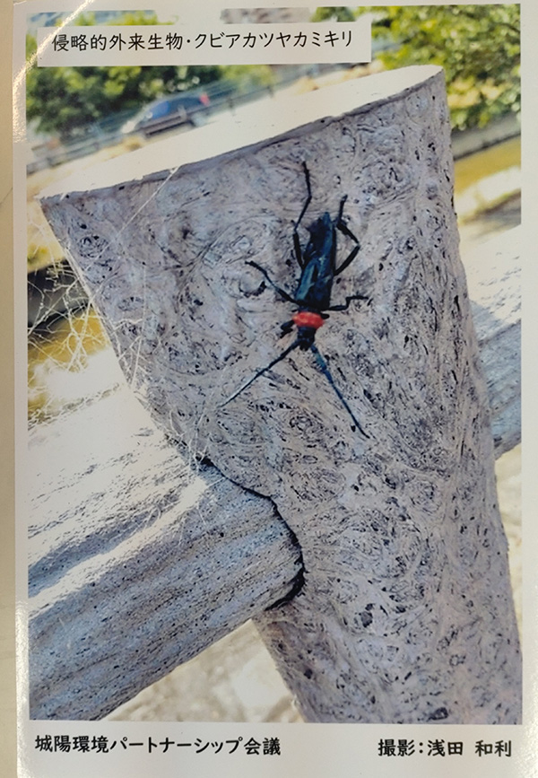 パートナーシップ会議の盟友はもとより、多くのナチュラリスト仲間たちの協力を得て、被害木の現地調査や広く一般の人たちへの聴き取り調査と共に、JAなど関係団体への警告と調査協力の依頼を行ってきました。この間、各種環境イベントなどでも外来生物をテーマにクビアカツヤカミキリの脅威を取りあげ、当フィールド日記での活動報告を配布資料として活用しています。また、実際の被害地の高槻市を訪れ、市の担当者から現地視察での調査と対処法を教えて頂き、先ずは早期発見による被害の拡大を防ぐことの大切さを実感しました。(写真⑧⑨)