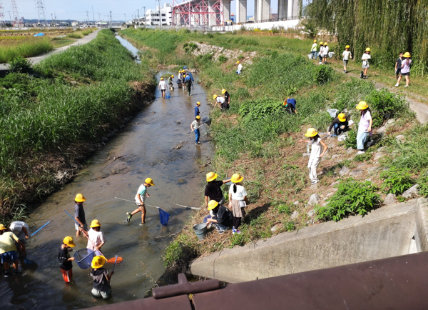 今年は6月からの異常気象の猛暑がたたり、夏場恒例の行事でも暑さ対策などで大変でした。例年、7月は第一土曜日に今池川フィールドで水辺の生き物観察会を実施していて、実際に川に入っての魚やカメなどの捕獲確認による貴重な記録も、過去20年間で数多く残っている歴史あるイベントです。午前中の開催とはいえ、近年の猛暑で季節をずらそうにも週末日程の壁があり、6月はカエルの観察会に8月までは恒例の夏休みイベント、9月以降も「きょうと☆いきものフェス!」など大きな環境イベントが続いて日程的に余裕がない状況です。