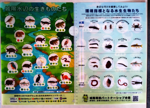 北小倉小学校では、10月2日の室内授業の日の朝にアライグマが罠にかかり披露しています。(写真⑧) 早速全員に配布した生き物ガイドブック・外来生物編2025が役に立ちました。10月5日は木津川市で「科学教室」(写真⑨) 9日は西大久保小学校の名木川生き物実習に、14日は北小倉小学校の野外実習授業と続きます。その間も7日と17日は地元の富野小学校の指導です。これら学校関係の催し物の他、各種イベントでもガイドブックと新作クリアファイル(写真⑩)をテキストとして配布できることは何よりの有効活用です。外来生物編はもちろん、植物編や希少生物編など以前のガイドブックも増版頂き、こうした総合的な観察会や研修会などのイベントに役立てられることは環境保護団体としての大きな評価につながることでしょう。来年2月11日の「京都環境フェスティバル」で完成披露のクリアファイル・野鳥編の完成も楽しみにしています。