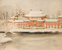 宇治市の平等院にある資料館「ミュージアム鳳翔館」企画展示室で、冬期特別展「馬描ける春~迎春所蔵作品展~」が開かれている。今年の干支「午」にちなみ、馬に関わる作品が並んでいる。