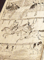 会場奥のショーウィンドウには大正~昭和時代に描かれた絵画「平等院春雪」「鳳凰堂乃雪」や伊勢物語和歌屏風など4点を収める。別コーナーでは、馬の旋毛から馬の良し悪しを判定するための「六十四旋毛善悪大図」があり、外見から馬の能力を予測する「馬相学」が古くからあったことがわかる。