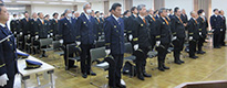 久御山町の消防出初式は役場コンベンションホールで開かれ、消防職・団員など120人および来賓60人が参加した。