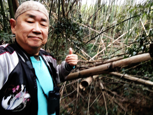 木津川フィールドでは、1983年から週に2回の定期調査を行い、籠抜け鳥を含む220種類もの野鳥の生息を確認してきましたが、この数年間のブランクで河川敷の環境変化が著しく、散策路がブッシュに埋もれ、改修工事で立ち入れない区域や竹藪の荒廃も見られて残念に思いました。2時間半の調査ルートで確認できた野鳥も初見鳥のオオタカはじめ18種類と振るわず、今年1年をかけて好フィールドの変遷を記録していきます。(写真③④⑤)