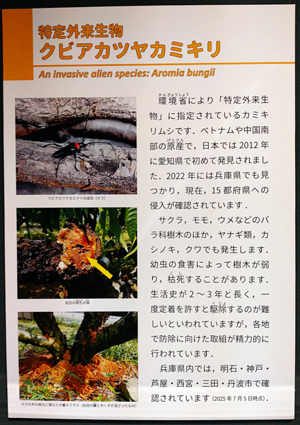 フィールド探査と共に博物館や水族館・動物園巡りをライフワークとする筆者、1月7日には兵庫県立・人と自然の博物館の「昆虫展」で、クビアカツヤカミキリ最近情報をチェックしてきました。(写真⑥⑦⑧) ここには元祖ナチュラリストの小林桂助先生のコーナーがあり、筆者が中学生の時に出会って野鳥に興味を持った「コバケイ図鑑」の著者の先生と共に、淡路島で勃発したオオタカの鶏への食害問題で県と環境省から現地調査に招へいを受けた鼻高々のエピソードもあり、毎年追善供養の報告に訪れています。(⑨⑩)