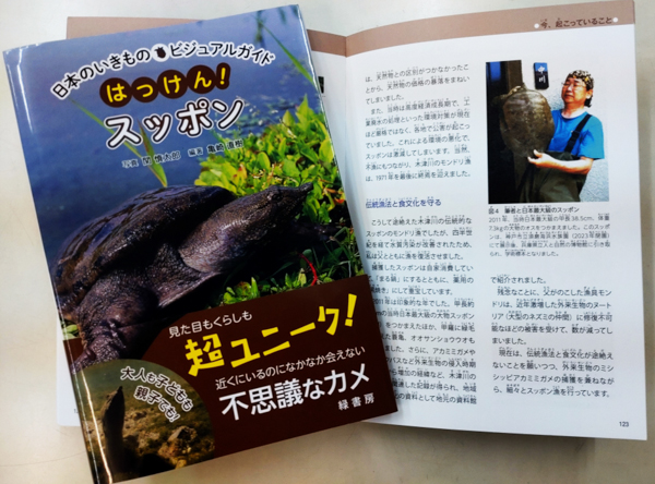 こうしたスッポン鍋やシシ鍋を囲む「自然の恵みの会」もコロナ禍以降は自重し、スッポン漁も控えていた経緯がありましたが、昨年の6月に緑書房から出版された「はっけん!スッポン」で「スッポン漁の歴史とモンドリ漁」と題して執筆していました。(写真⑯)著者・編者は元京都水族館副館長の関慎太郎さんと元神戸市立須磨海浜水族園園長の亀崎直樹さんの、共に我が家名物天然スッポンの味を知る日本爬虫両棲類学会の同好の士です。古くは歴史家の奈良本辰也先生や、動物行動学者の日高敏隆先生の祝宴の席のメインを飾った我が家伝統の料理を、絶やすことのないよう決意も新たなロートルナチュラリストの新春です。以下次号で。
