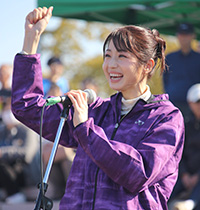 開会式は午前9時40分から中央広場で行われた。平田研一実行委員長の開会宣言に続き、松村淳子市長は主催者、木本裕章市議会議長は来賓として参加者を激励。市観光大使の中村静香さんも挨拶に立ち、ガッツボーズでエールを送った。