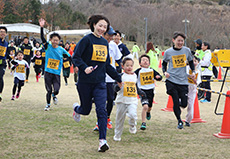レースは園内1・2㌔の周回コースで行われ、午前10時10分の小学3・4年生の部を皮切りに、親子の部(小学1・2年生と保護者)、小学5・6年生の部、中学生と50歳以上の部、一般の部の順でスタート。各部門3位までが表彰され、それぞれの入賞者に賞状とメダルが授与された。