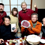 依然コロナ禍での自粛ミニ懇親会は、猟師仲間から提供を受けたシシ肉のぼたん鍋を囲みました。プレミアシートの参加者は、昨年に「和束の生きものハンドブック」の完成でお役目を終えた和束町の淡水魚調査メンバーの林博之先生(①右2)に水野尚之・真理先生夫妻(同左)に、生き物好きな孫の英次郎君に著書への為書きゲットの来賓は島本憲司さん(同右)です。レジェンドからクニマス発見のエピソードなど貴重なお話をたくさん聞くことができ、筆者も天然記念物のイタセンパラやカワバタモロコなどの希少淡水魚発見の自慢話で溜飲を下げ、コロナ鬱解消の楽しい新年会となりました。