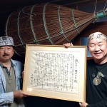 淡水魚調査に心強いアドバイザーを得て、これからのフィールド調査にも夢が膨らみます。今年は、極寒の年末にも防賀川で調査をされていた林博之先生のサポーターとして、絶滅種・ヨドコガタスジシマドジョウの再発見を夢みています。林先生作成の「京都府南部の淡水魚」の試作版(写真③)も、漁具の研究者でもある京大名誉教授の水野尚之先生(写真④左)の「滅びゆくモンドリ漁」の企画展で、あらためて郷土の淡水魚ガイドブックとして公表できたらと考えています。