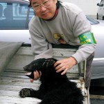 かくして懐かしい写真を蔵出ししてきました。宇治田原町で交通事故死したクマの鑑定では、500円玉大のダニがいくつもついていたことを思い出します。(写真⑧) そしてもう一枚、ヤマカガシの黒化型・カラスヘビをゲットしての記念撮影には、地元の阪本伊三雄先生(写真⑨左)と共に水野尚之先生・林博之先生に岡井勇樹君たちの姿が、ジュニアメンバーたちと共に写っていました。20年の歳月を経ても尚、フィールドの夢を共有できるナチュラリスト仲間たちに支えられ、水ぬるむ楽しみな季節を迎えます。朗報発信にご期待下さい。